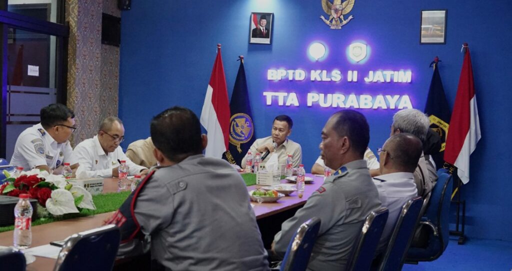 Surabaya (28/8) – Direktur Jenderal Perhubungan Darat Kementerian Perhubungan, Aan Suhanan, melakukan kunjungan kerja di Jawa Timur dengan meninjau dua simpul penting transportasi darat, yakni Terminal Tipe A Purabaya (Bungurasih) dan Unit Pelaksana Penimbangan Kendaraan Bermotor (UPPKB) Trosobo, Kamis (28/8).