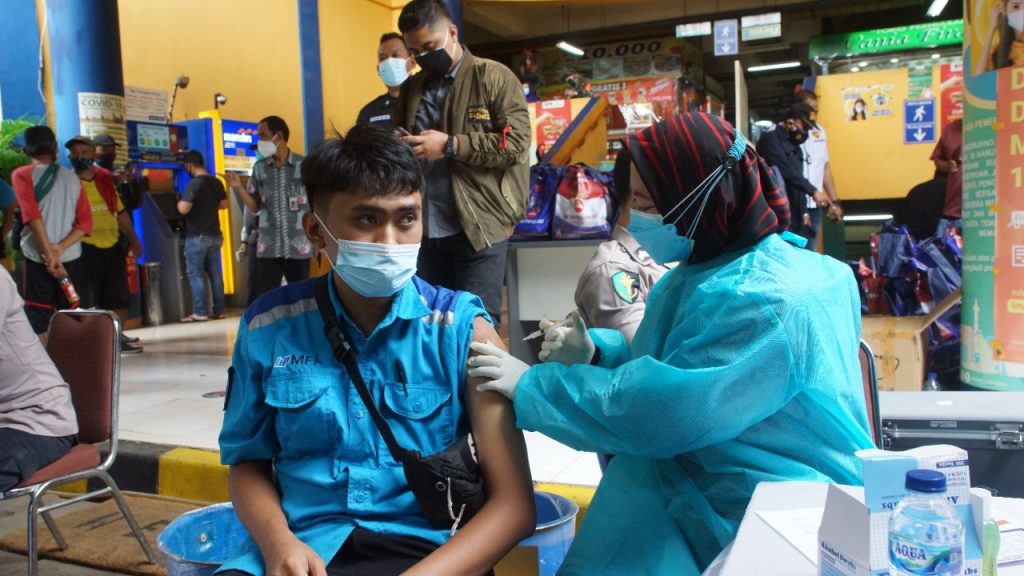Adapun Kegiatan Gerai Vaksin Presisi Keliling yang dilaksanakan oleh Polres Metro Jakarta Timur di Pasar Induk KramatJati, selain melaksanakan Vaksin juga di lakukan swab antigen terlebih dahulu dan setelah selasai melaksanakan vaksin juga di berikan paket sembako.