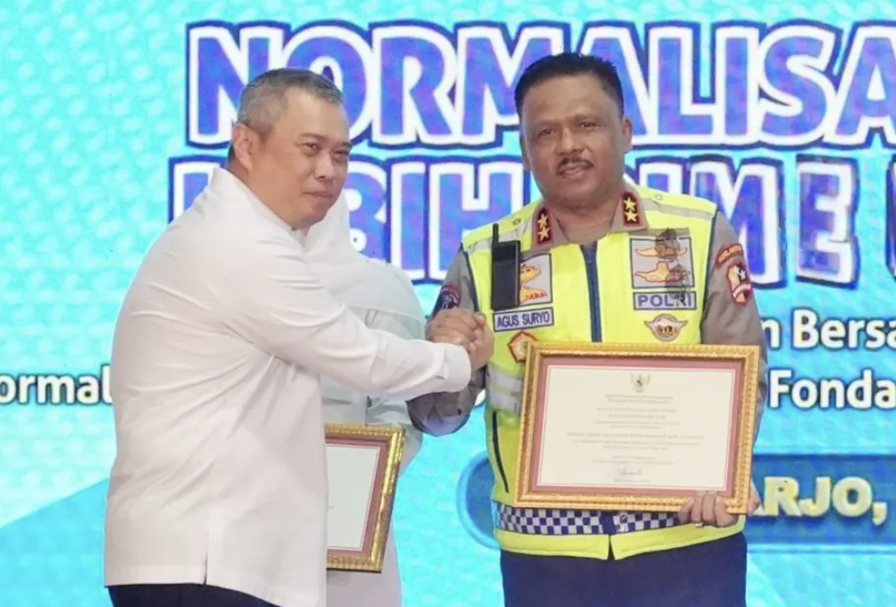 Sebagai bentuk apresiasi, Kementerian Perhubungan memberikan piagam penghargaan kepada Gubernur Jawa Timur, Kakorlantas Polri, PT Jasa Raharja, PT Jasa Marga, serta Gerakan Sopir Jawa Timur atas komitmen dan langkah strategis mendukung kebijakan nasional menuju Zero Over Dimension Over Load 2027.