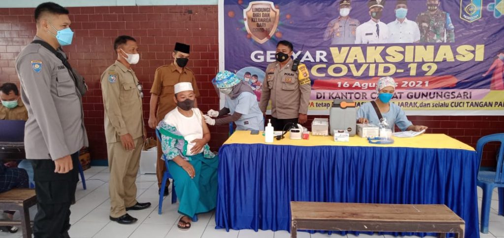 Pengamanan dilakukan oleh Kapolsek Gunungsari Iptu Agus Eka Artha Sudjana, SH beserta Anggota Jajaran Polsek Gunungsari terhadap pelaksanaan kegiatan Vaksinasi Massal Covid-19, yang digelar di Halaman Kantor Camat Gunungsari, Senin (16/08/2021).